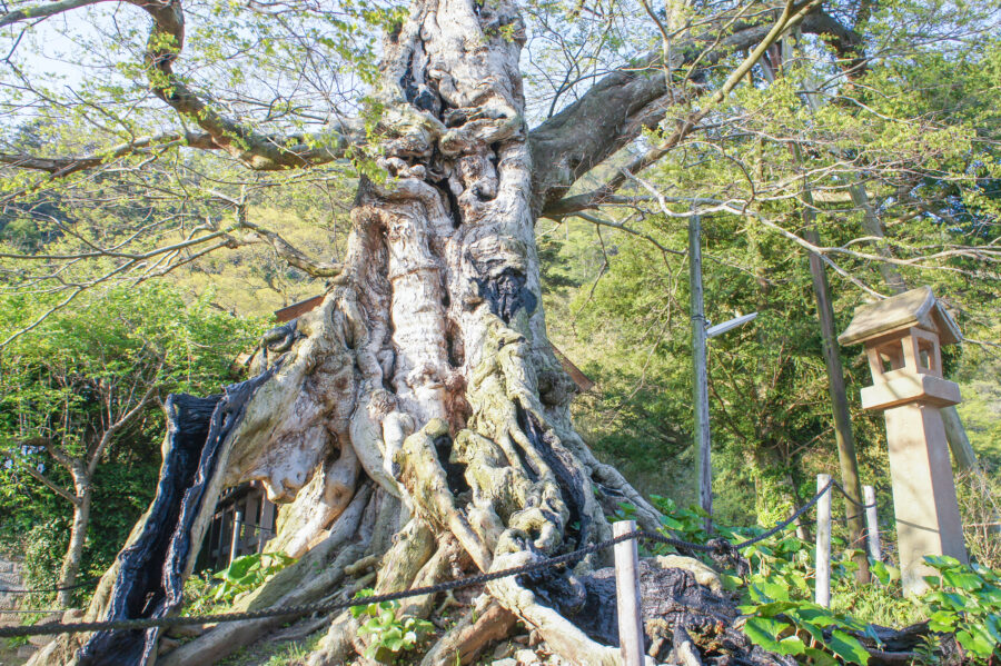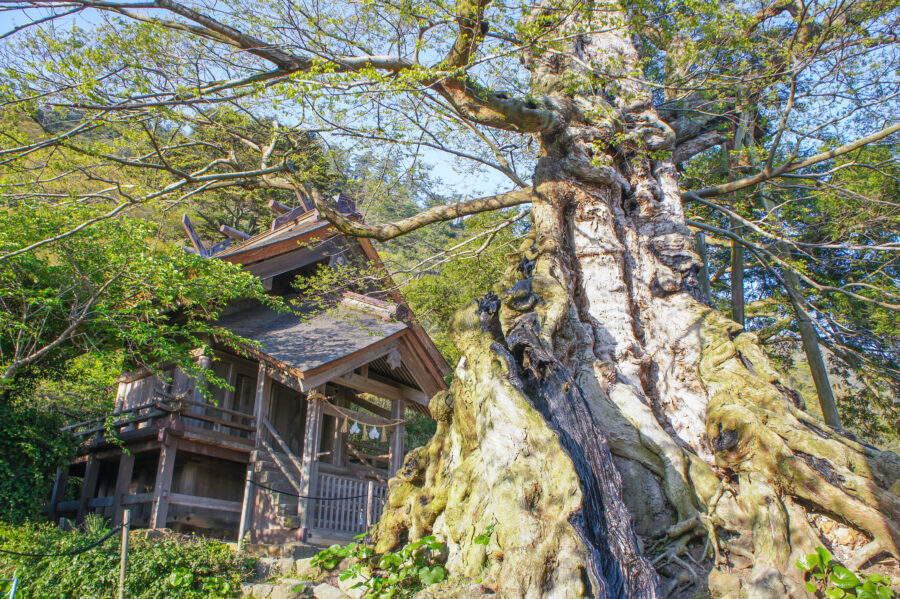 社殿の前に樹齢千年ともいわれる巨大なムクの木があり、大きな生命力や不思議なパワーを感じる人も多いようです。
