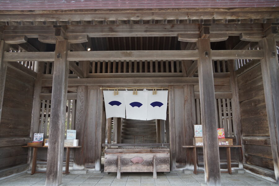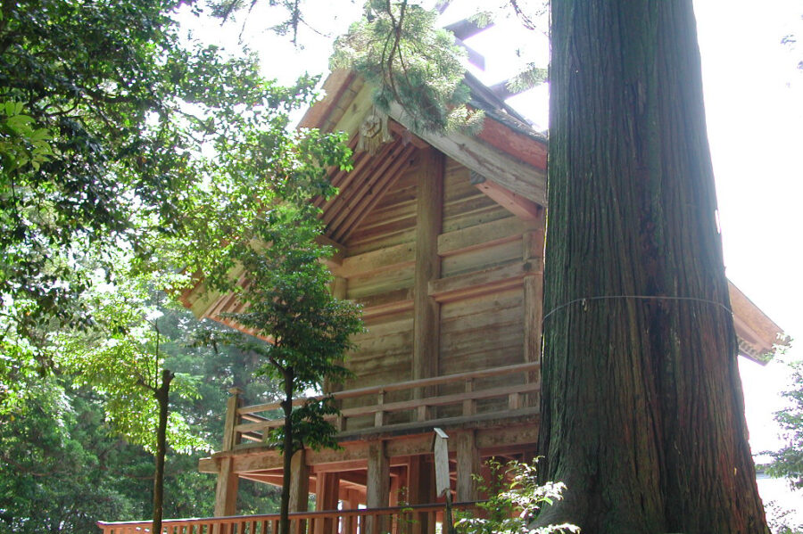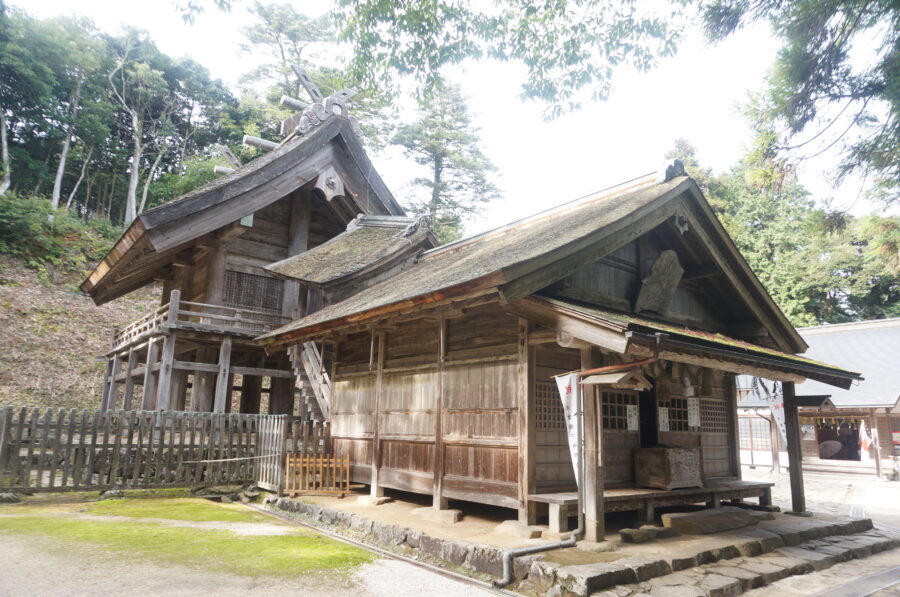 美保湾を望む場所に建ち、大社造りの本殿が二つ並ぶ珍しい形式の社殿に、大国主神の御后神である三穂津姫命(ミホツヒメノミコト)と御子神である事代主神(コトシロヌシノカミ)を祀っています。
