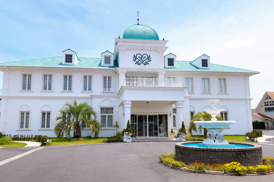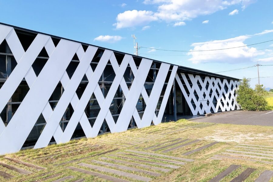 田園風景の中に浮かぶ白くておしゃれな建物。