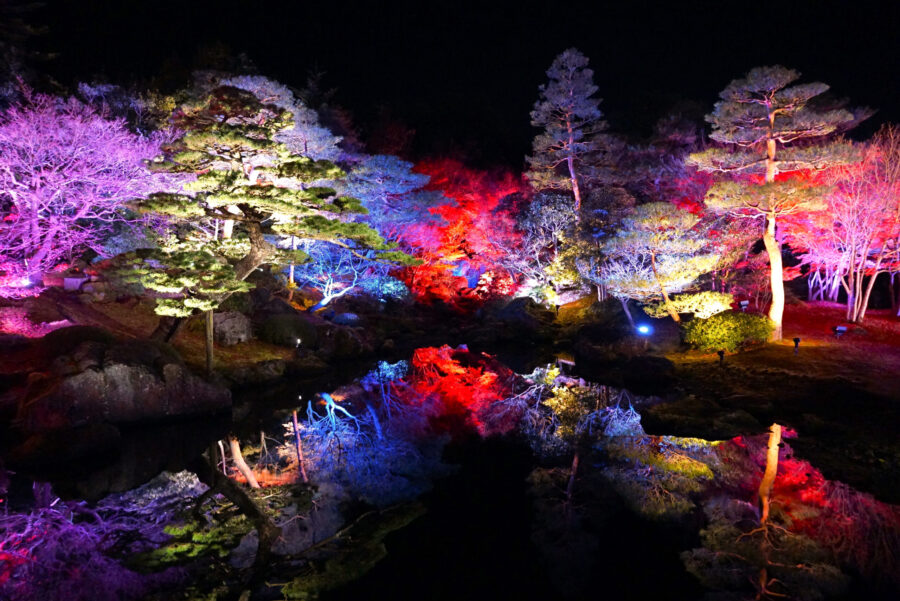 【津和野 堀庭園】秋の紅葉ライトアップ